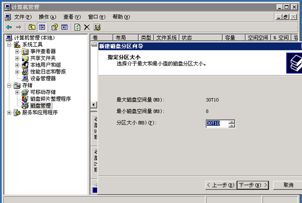 2.选择磁盘管理,出现下图,点下一步