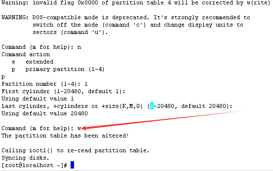 3、进入fdisk命令,输入h可以看到该命令的帮助,按n进行分区